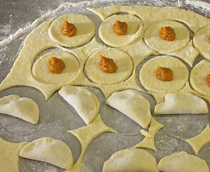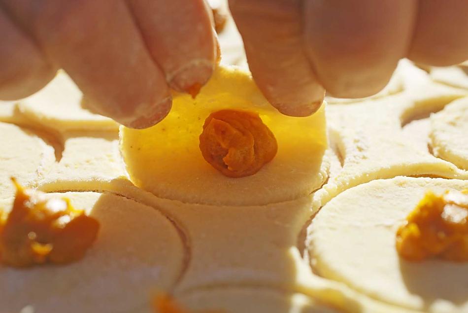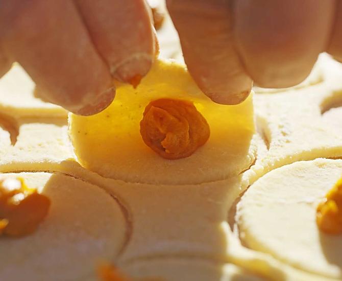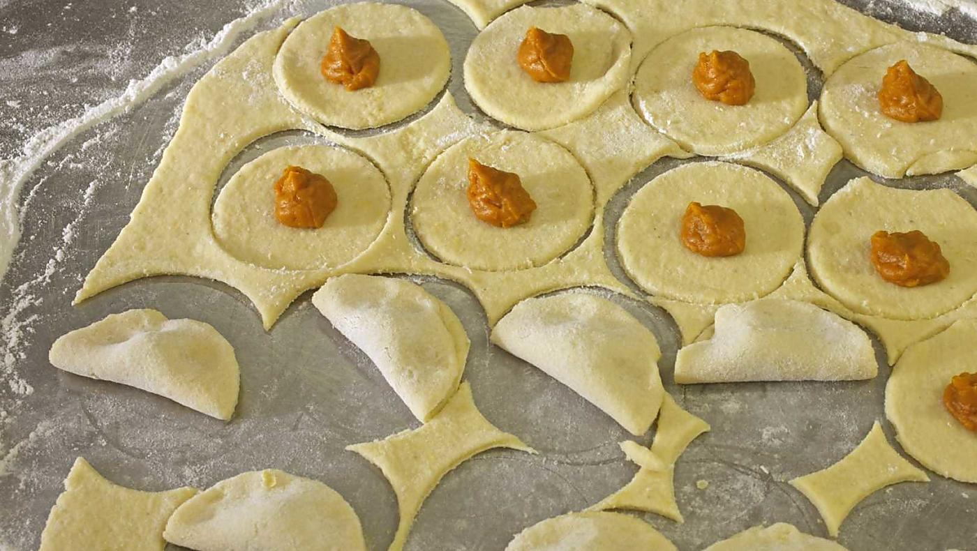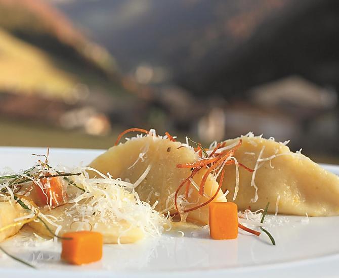 Kartoffelteigtaschen mit Kürbisfüllung100% hofeigener Kürbis Rest Kartoffel von anderen Südtiroler Bauernhöfen Highlight des Bauernhofes