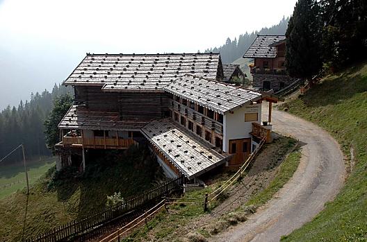 • Einzigartig, das Holzschindeldach vieler Häuser im Tal
