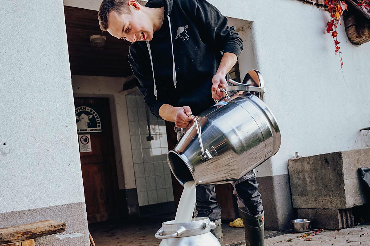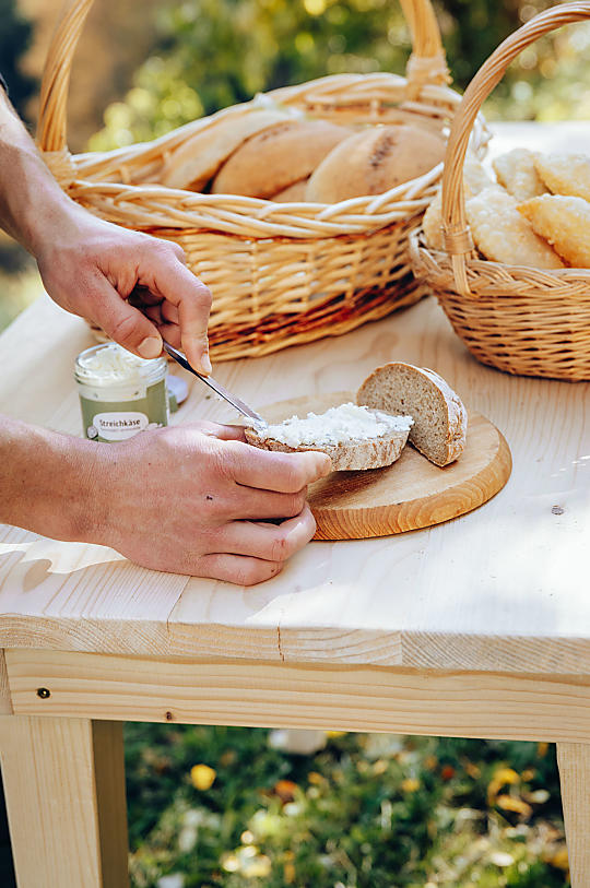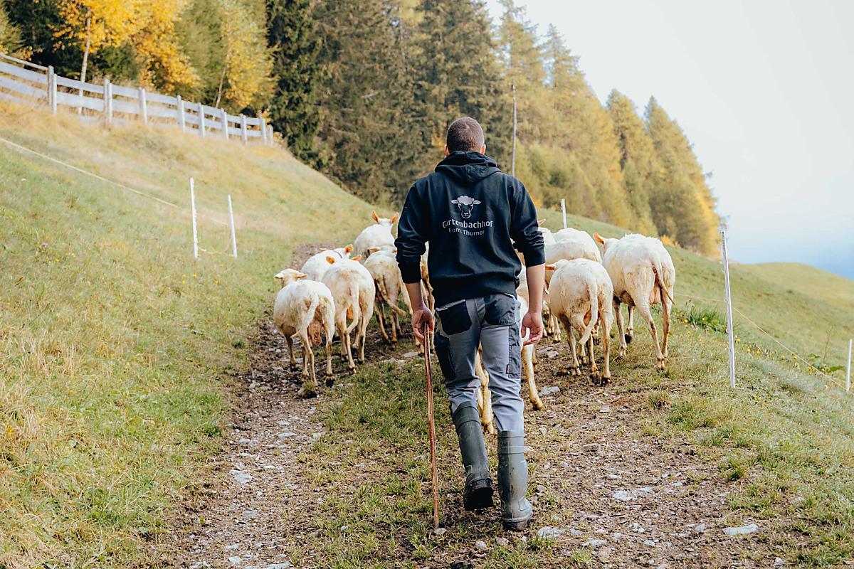 Um den Gartenbachhof liegen 12 ha Grünland, 5 ha Weide und 23 ha Wald. Dort genießen 32 Milchschafe und 10 Lämmer der Rassen "Lacaune" und "Ostfriesisches Milchschaf" von Mitte März bis Mitte November frische Bergluft und Weidengras. Die muttergebundene Aufzucht und eine kraftfutterfreie Fütterung sind Bauer Daniel sehr wichtig.