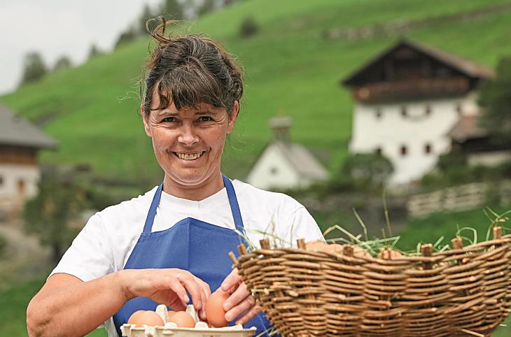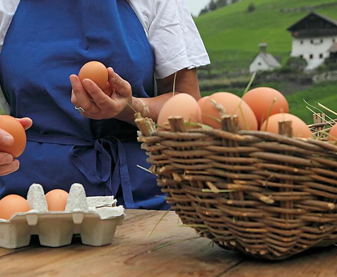 Die Lage ist atemberaubend. Im Flitzer Tal, einem Seitental von Villnöss leben die Hühner mit Blick auf die berühmten Geisler Spitzen. Gentechnikfreie Fütterung und genügend Auslauf bieten die besten Voraussetzungen für qualitativ hochwertige Freiland-Eier.