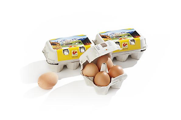 Die Freilandeier werden auf Beschädigungen kontrolliert und gewaschen. Anschließend werden sie sortiert, nach Herkunft und Haltungsform kodiert und in Vierer- bzw. Sechserschachteln verpackt.