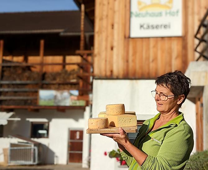 Kristel Weitlaner hat den Hof von ihren Eltern übernommen und bewirtschaftet ihn gemeinsam mit ihrem Mann Lambert und ihrem Sohn Stefan. Lambert war viele Jahre als Käsereifachmann angestellt und hat nebenberuflich den Neuhaus-Hof bewirtschaftet. Mit der Errichtung der Hofkäserei konnte er sowohl der Doppelbelastung zwischen Beruf und Landwirtschaft entgehen aber auch seine Leidenschaft, Käse herzustellen, zu Hause verwirklichen. Heute produziert Sohn Stefan die vielen köstlichen Käsesorten am Hof. Dabei kann er viel vom reichen Erfahrungsschatz seines Vaters profitieren.