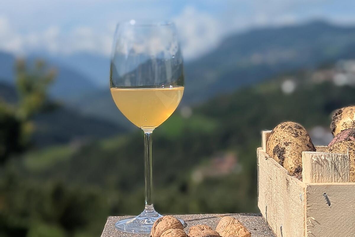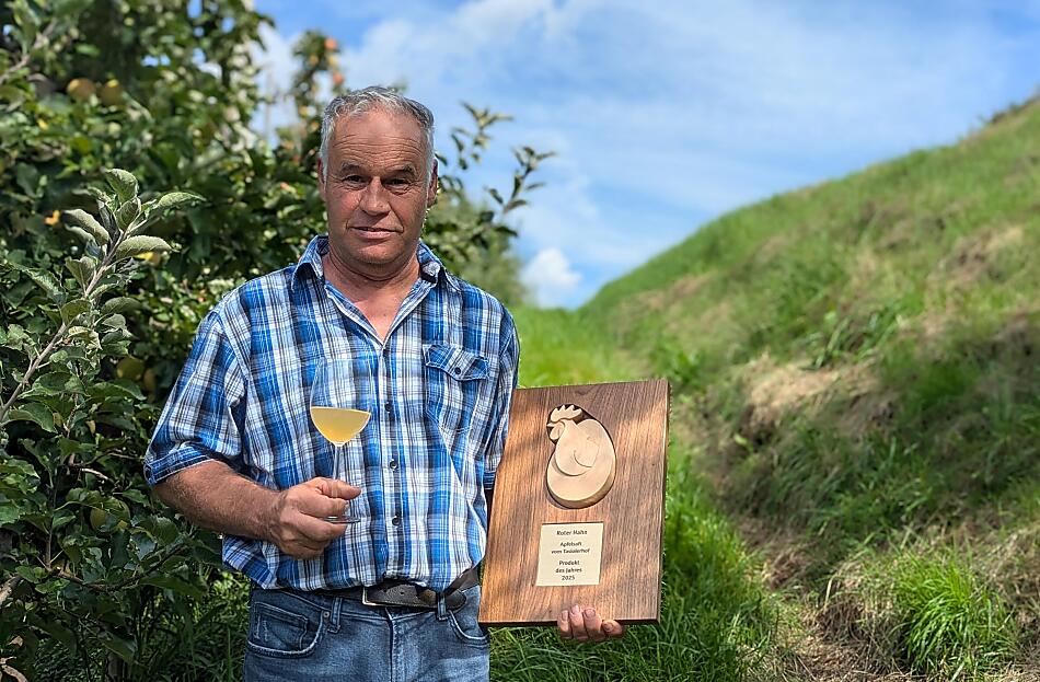 Die Apfelanlagen liegen am Tasiolerhof in sonniger Lage auf 900 m Meereshöhe. Damit zählt Andreas Gostner zu den höchstgelegenen Apfelproduzenten Südtirols. Diese besondere Lage verleiht den Äpfeln eine sehr vielschichtige Aromatik. Zudem belässt Bauer Andreas die Äpfel so lange am Baum, bis sie die für die Saftverarbeitung optimale Reife erreicht haben. Bei der Sortenwahl hat er sich für Golden und Jonagold entschieden. Diese verleihen dem Saft ein angenehmes und ausgewogenes Verhältnis zwischen bekömmlicher Süße und spritziger Säure.