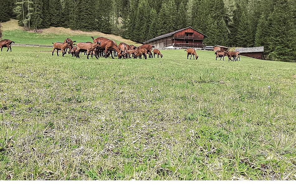 Der Laufstall bietet den Kühen und Ziegen viel Platz, um sich wohl zu fühlen. Im Sommer genießen die Kühe frisches Gras auf der Weide neben dem Hof und die Ziegen verbringen ihre Zeit zusammen mit den Schafen auf der Alm. Durch die silagefreie Fütterung mit hofeigenem Grundfutter liefern sie qualitativ hochwertige Milch.