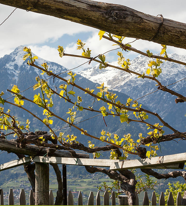 Jene Triebe, die beim Weinstock in Bodennähe austreiben, werden entfernt. Ebenso werden die Triebe auf der Rute von etwa 15 auf 6 bis 8 reduziert. Die verbleibenden Triebe sind gleichmäßig auf der Fruchtrute verteilt, denn dort wachsen später die Trauben heran. Die Arbeit des sorgfältigen Ausdünnens nennt man in Südtirol „Schabigen“. Unerlässlich im Weinbau ist ein gesunder Boden. Am wohlsten fühlen sich die Reben in lockerer, gut durchlüfteter und nährstoffreicher Erde. Dafür sorgt der Bauer durch die Bodenbearbeitung im April.