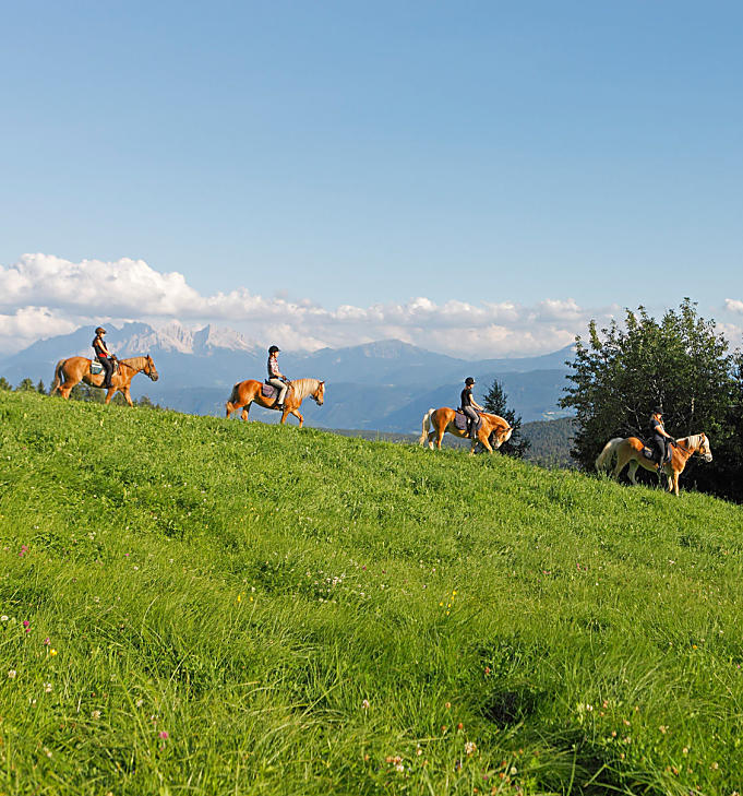 In sanftem Trab geht es über sonnige Hochplateaus und saftige Almwiesen, durch lichte Wälder und weite Täler. Es gibt wohl keinen eleganteren Weg als die schöne Landschaft Südtirols auf dem Rücken der Pferde zu erkunden. Südtirol ist wie gemacht für einen Reiturlaub.