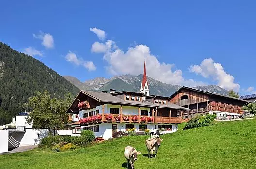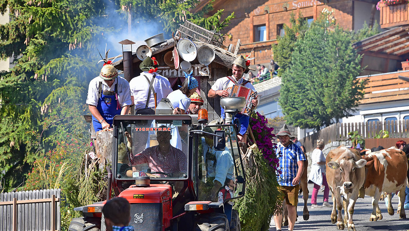 Beim Almabtrieb in Meransen wird die heile Rückkehr der Tiere von der Alm mit einem großen Bauernfest gefeiert.