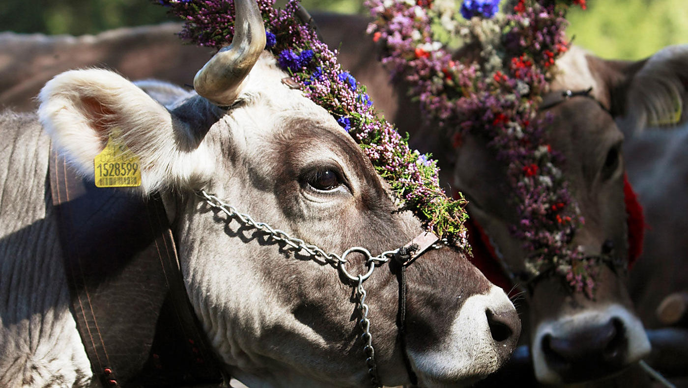 Der Bergsommer geht zu Ende und die Kühe werden von der Rescher Alm wieder in das Tal zu ihren Heimathöfen getrieben.