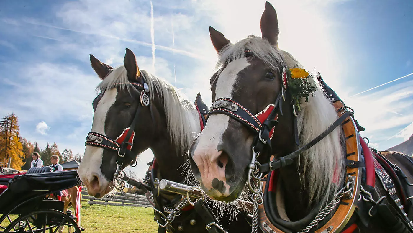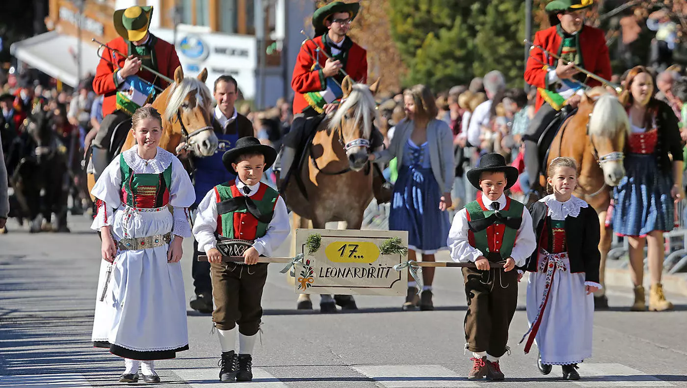 Tradition und Brauchtum spielen beim Leonardiritt in Alta Badia eine große Rolle. Ladinische Trachtenträger/-innen, prachtvoll dekorierte Kutschen und festlich geschmückte Haflinger- und Noriker-Pferde nehmen an der Prozession teil. Nach dem Umzug werden die Pferde und die Züchter gesegnet.