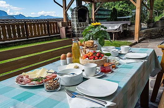 Im Herbst hört man die Kuhglocken auf der Weide vor dem Bauernhof bimmeln. Die Bauersleute laden zur Marende mit vielen hofeigenen Produkten wie herzhaftem Speck, Frischkäse oder selbstgebackenes Brot.