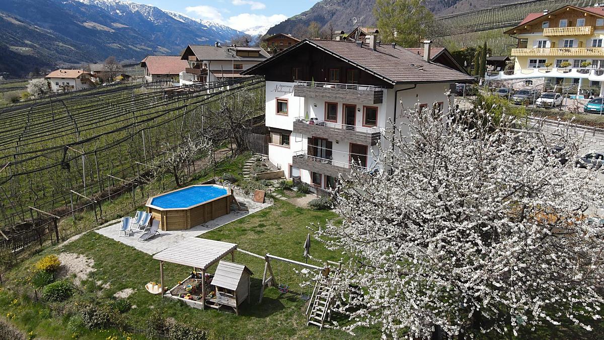 Unser Hof liegt in einer gemütlichen sonnigen Lage inmitten von Obstgärten oberhalb von Algund. Bereits seit 1996 setzen wir auf natürliche Bewirtschaftung für mehr Nachhaltigkeit.