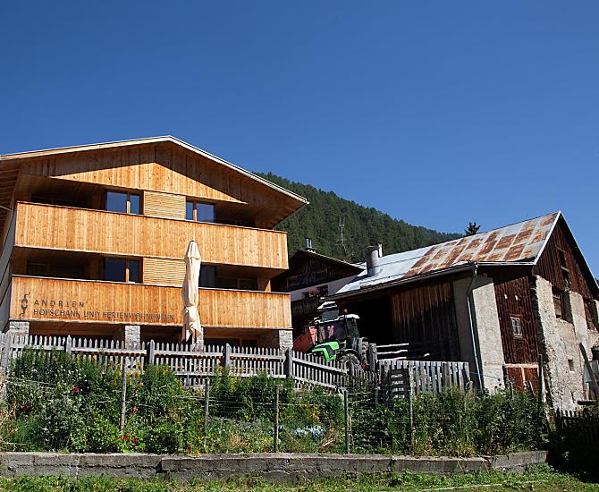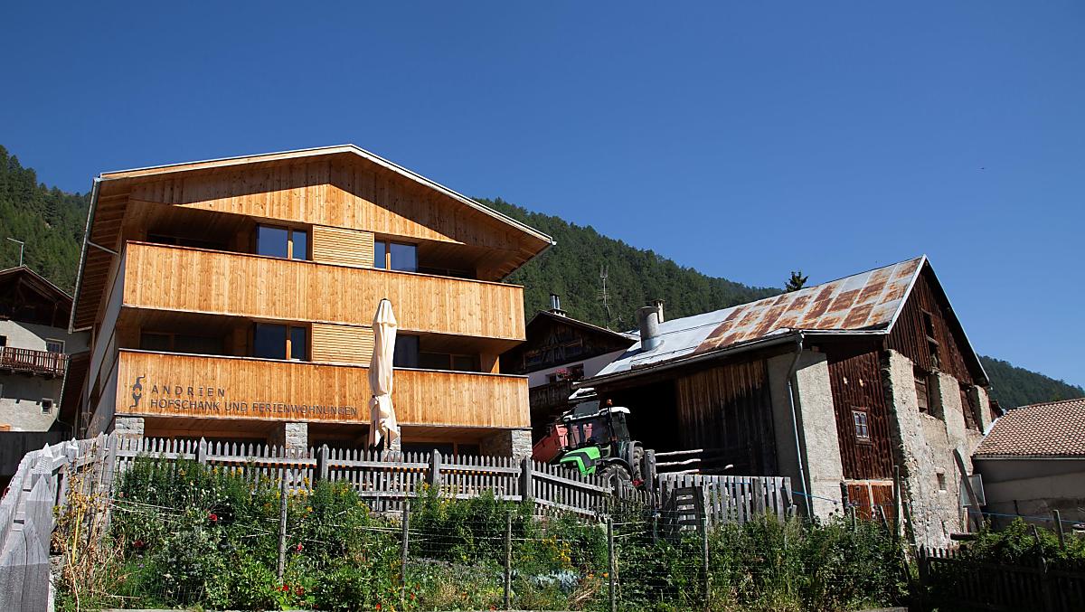 Ganz nach unserem Motto Ruhe und Berge lässt es sich bei uns wohnen. Unsere Hofstätte verbindet Altes mit Neuem: Geradlinige Architektur, heimisches Zirbelholz und hochwertige Ausstattung sind unser Merkmal. Nach 20 Jahren auf der Schliniger Alm führen wir nun direkt am Haus und Hof Andrien auch unseren eigenen Hofschank. Als Familie verbinden wir Landwirtschaft, Tourismus und Gastgewerbe zu einem Ferien-Wohlfühlort für alle kulinarischen Naturliebhaber.