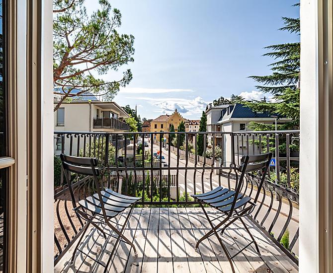Der denkmalgeschützte Ansitz liegt im Herzen von Obermais, angrenzend an Wiesen und Weinreben und nur wenige Gehminuten von der Meraner Altstadt entfernt. Der Layshof bietet den idealen Ausgangspunkt für Ausflüge ins Meraner Umland oder um die kulturelle Vielfalt der Kurstadt zu entdecken. Der Ansitz wurde mit viel Liebe zum Detail und mit Ehrfurcht vor der historischen Bausubstanz renoviert. Der Gewölbekeller mit romanischen Mauern, der große herrschaftliche Mittelsaal mit aufwändigen Stuckdecken, Terracottaböden und Kaminen sowie die barocke Kassettendecke machen Geschichte greifbar. Die große Liebe zu kleinen Besonderheiten wie die Privatsauna auf der Dachterrasse, das „Geheim-Kämmerchen“ ober dem Torbogen oder der Aufzug im ehemaligen Latrinenturm verleihen dem Ansitz Layshof und jeder unserer Wohnungen einen ganz eigenen Charakter. Lust auf einen Urlaub mit Geschichte?