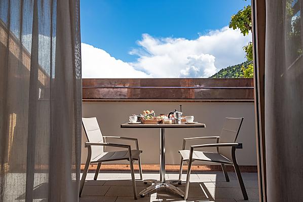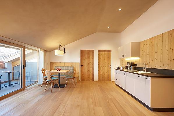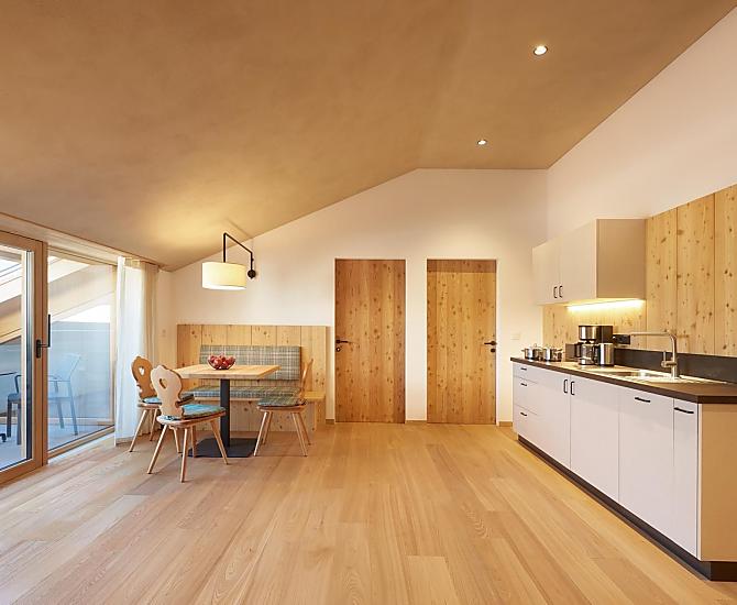- Hofeigene Produkte beim Frühstück: Speck, Eier, Fruchtaufstriche, Sirup, Fruchtsäfte, Trockenobst, Gelees, Eingelegtes, Kräutertee, Backwaren, Frisches Gemüse je nach Saison, Frisches Obst je nach Saison