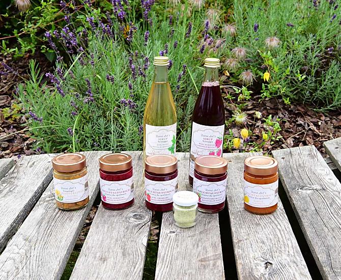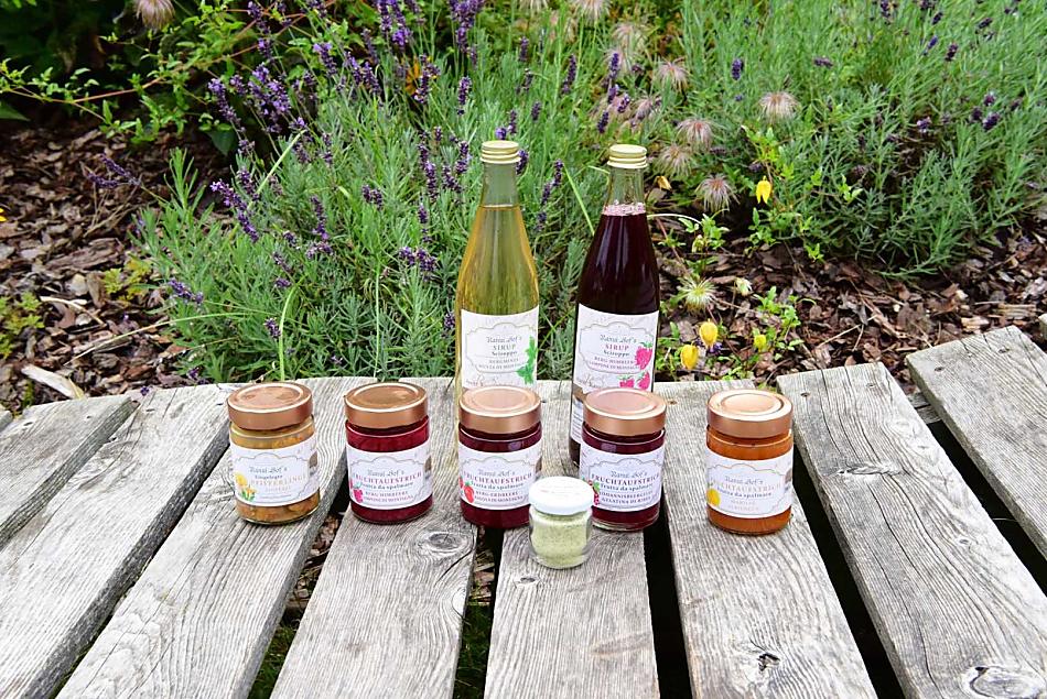 - Sirup (Himbeersirup, Holunderbeerensirup, Holunderblütensirup, Löwenzahnsirup, Melissensirup, Pfefferminzsirup, Sauerkirschsirup, Zitronenmelissensirup)