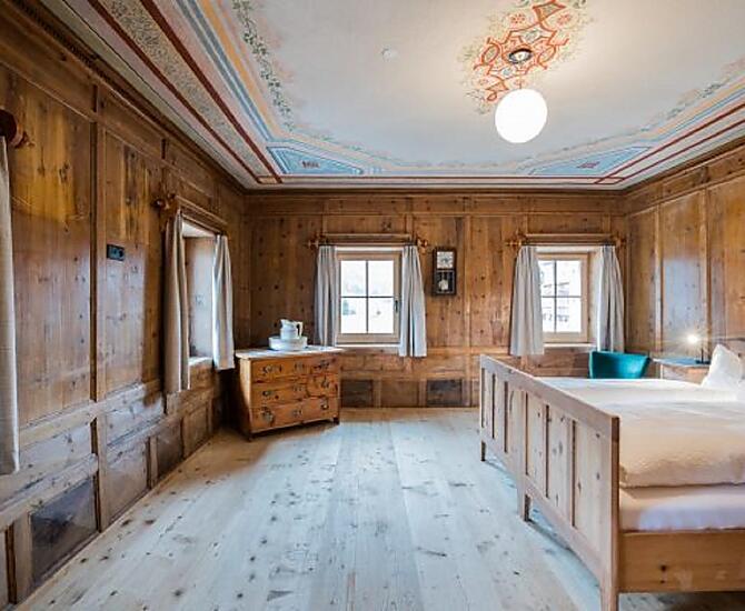 - Antike Möbel, Holztäfelungen und Malereien an den Überböden