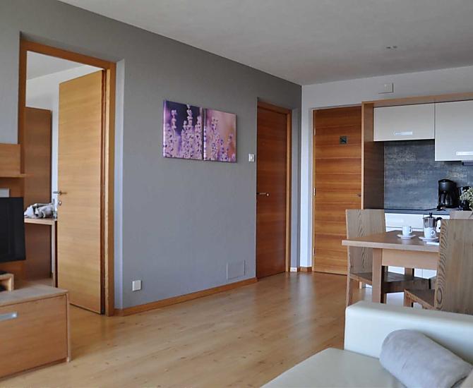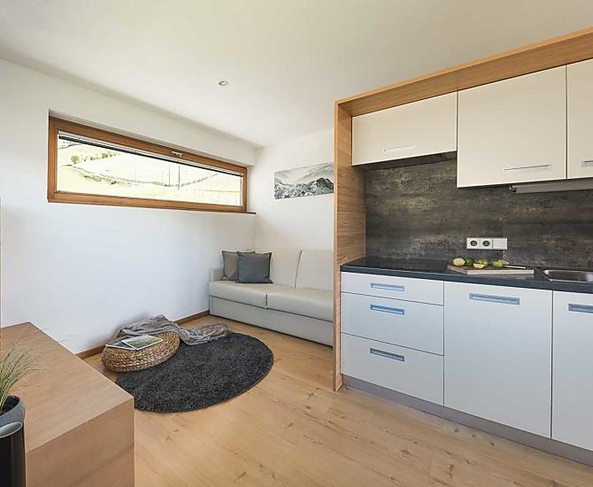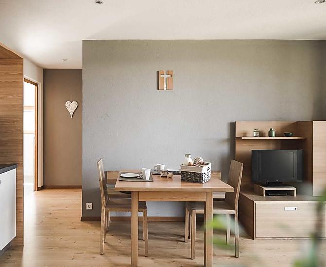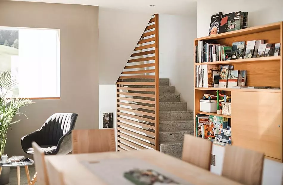 Vier lichtdurchflutete Ferienwohnungen, alle mit Süd-Westausrichtung, Aussichtsbalkon mit Sonnenliegen sowie bodentiefen, großen Fensterflächen geben dem Gast schon bei der Ankunft das Gefühl, direkt mit der Natur und dem zauberhaften Bergpanorama verbunden zu sein. Das moderne Wohnkonzept mit hochwertigen Möbeln aus großteils heimischen, biologisch geölten Hölzern, ausgesuchten Details und harmonischen Farben bietet seinen Bewohnern ein stimmiges Wohlfühlambiente, ohne vom Wesentlichen abzulenken. Als Klimahaus wird unser Haus hohen ökologischen Ansprüchen gerecht.