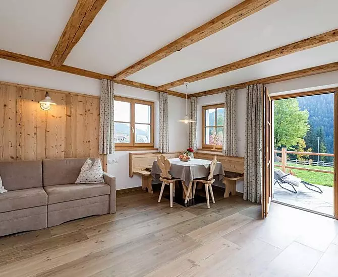Sie wohnen in lichtdurchfluteten, liebevoll eingerichteten Ferienwohnungen, die nach Holz duften und in der kalten Jahreszeit laden warme Öfen zum Kuscheln ein... einfach zum Wohlfühlen.