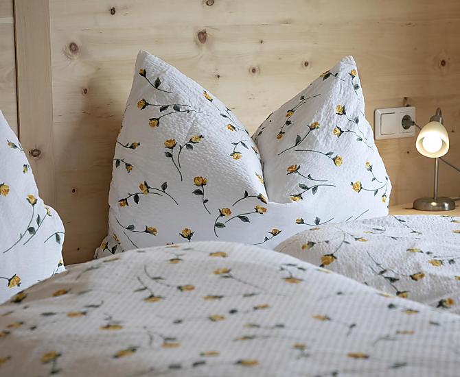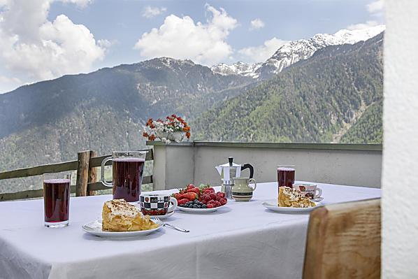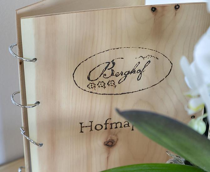 - Hofeigene Produkte beim Frühstück: Speck, Eier, Fruchtaufstriche, Sirup, Fruchtsäfte, Kräutertee, Brot, Backwaren, Frisches Gemüse je nach Saison, Frisches Obst je nach Saison