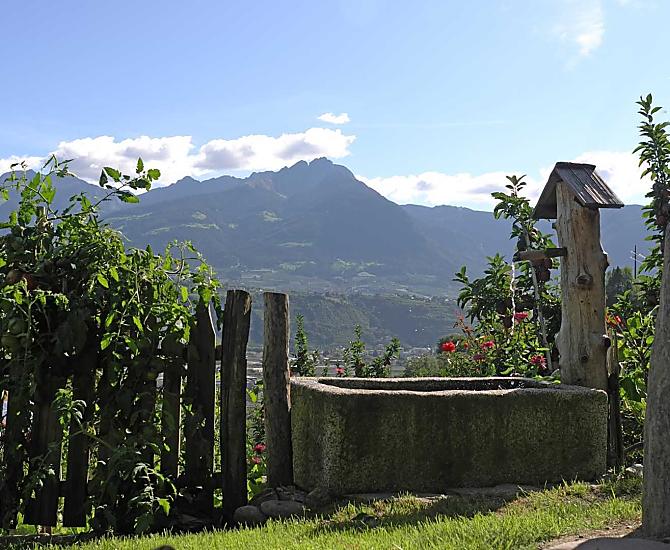 Auf unserem Bauernhof erwartet sie ein Urlaub der besonderen Art. Fernab von Touristen-Massen liegt unser Hof im grünen Talkessel des Burggrafenamtes und in der Nähe des Marlinger Waalwegs. Der Charakter unserer modernen Ferienwohnungen wird durch Massivholzmöbel aus heimischen Holz sowie Licht geprägt. Außerdem genießen Sie den einzigartigen Blick auf die Stadt Meran und die Aussicht auf die schwindelerregenden Bergeshöhen der Texelgruppe. Passivholz Bauweise – ein Ambiente geschaffen aus natürlichen Materialien und nachhaltigem Lebensstil.