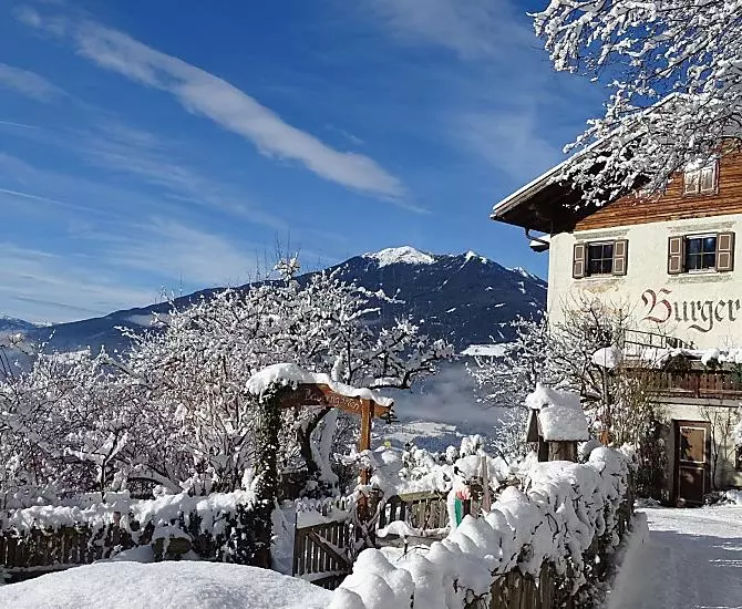 Unser Burgerhof wird erstmals 1451 erwähnt und liegt direkt am geschichtlich besonderen und sagenumwobenen Hausberg dem „Burger Bichl“.
