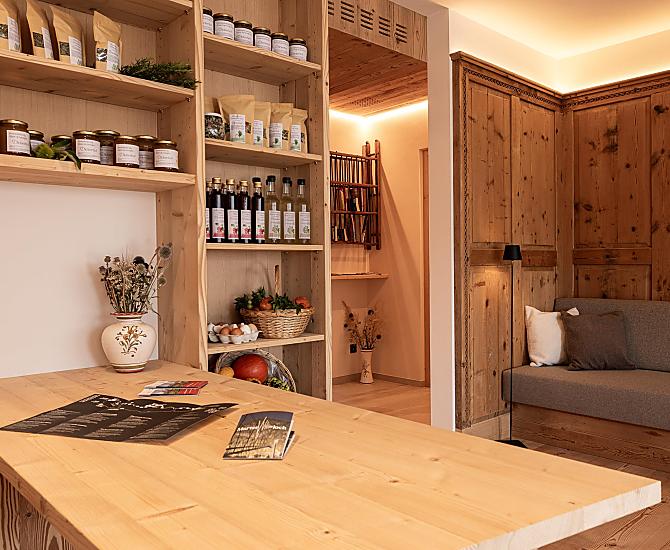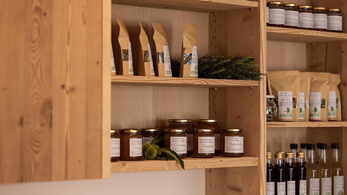- Hofeigene Produkte beim Frühstück: Eier, Honig, Fruchtaufstriche, Sirup, Trockenobst, Kräutertee, Backwaren, Frisches Gemüse je nach Saison, Frisches Obst je nach Saison