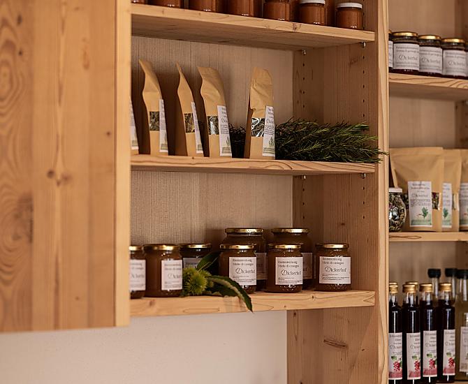 - Fruchtaufstriche (Kastaniencreme-Aufstrich, Marille Fruchtaufstrich, Rote Johannisbeere Fruchtaufstrich)