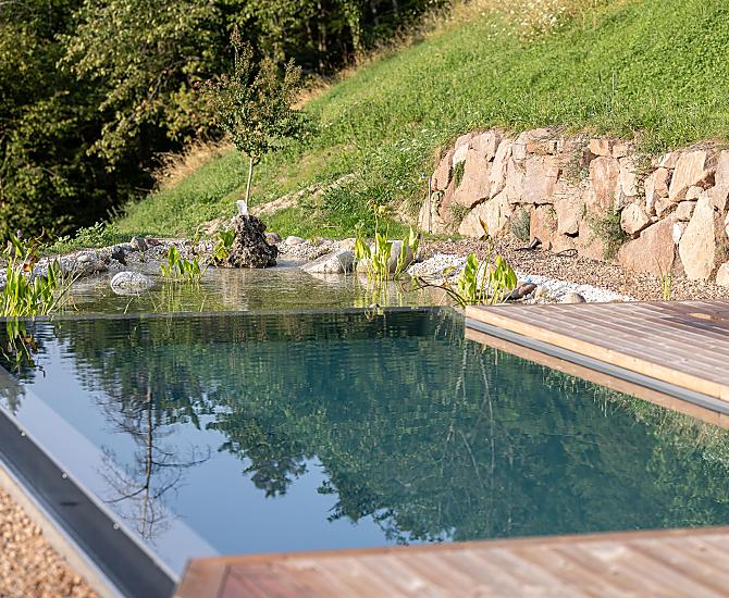 - Badespaß im beheizten Biopool und eigener Wohlfühlbereich.