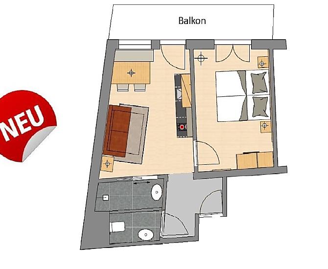2-3 Personen (2 fixe Betten) 40m²