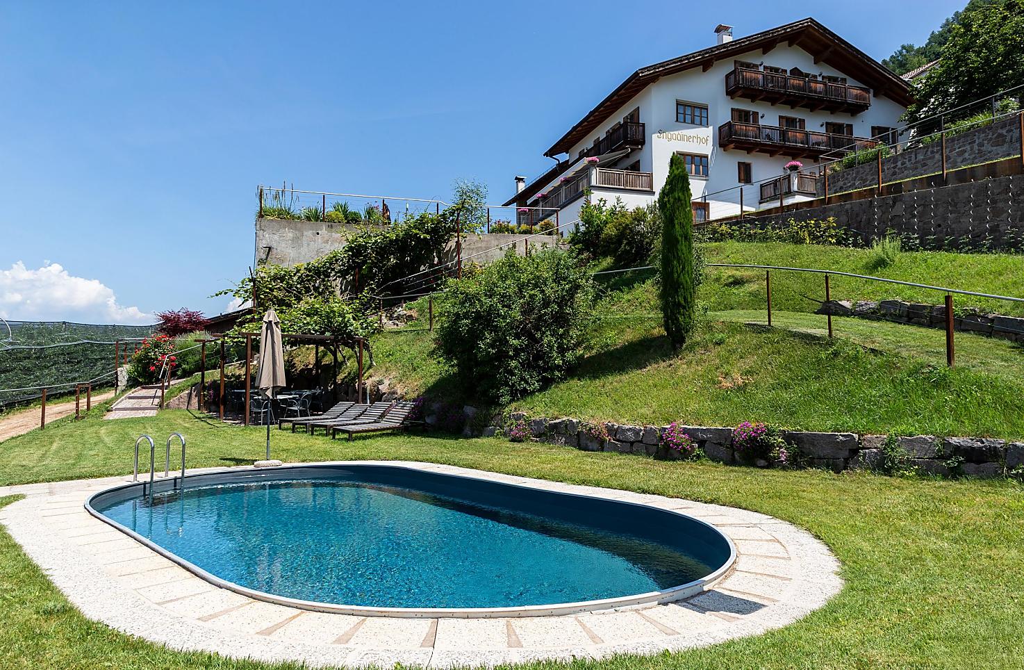 Urlaub auf dem Bauernhof mit Wein und Apartments in Südtirols Süden mit traumhaftem Panoramablick zum Kalterer See und auf das Südtiroler Unterland. Slow Travel für Weinliebhaber, Genießer, Naturliebhaber, Wanderer, Mountainbiker, Sportbegeisterte und Familien. Unser Bauernhof mit eigener Hofkellerei verzaubert inmitten von Obstwiesen, Weinreben, Beerensträuchern, Kräutern und Blumen. Eine grüne Oase zum Abschalten und Auftanken. Das Freischwimmbad mit Liegewiese lässt keine Wünsche offen. Die Kneippanlage, der Naturspielplatz und die Panoramaterrasse machen Ihren Urlaub unvergesslich. Werden Sie Engadiner-Freunde und erleben Sie die Hofführung mit Umtrunk. Genießen Sie das Panorama mit authentischen, edlen, hofeigenen Weinen und bäuerlichen Köstlichkeiten. Ihre Gastgeberfamilie Zelger wird Sie nach Südtiroler Gastfreundschaft empfangen und verwöhnen. Nachhaltigen Urlaub erleben mit der Gästekarte "Südtirols Süden Card", für unsere Gäste kostenlos. Alle Apartments in Naturholz Zirbe.