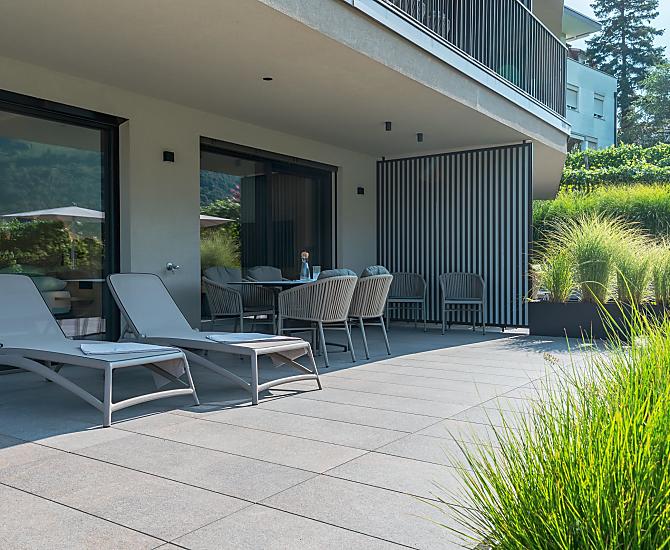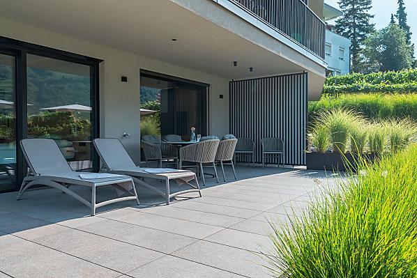 Es erwarten Sie neue, moderne Ferienwohnungen mit Privatsauna und Whirlpool sowie ein herrlicher Blick auf den Rosengarten.