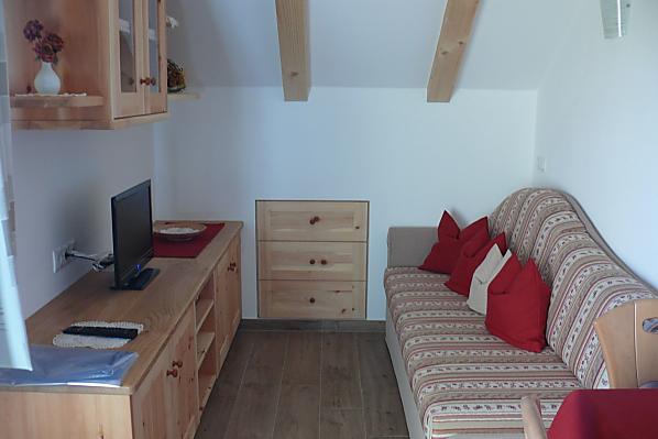 Die neu erbaute Ferienwohnung bietet Platz für 2-5 Personen, bestehend aus 2 mit Zirmholz ausgestatteten Schlafzimmern sowie einer mit allem Komfort ausgestatteten Wohnküche. Außerdem verfügt sie über einen Balkon mit herrlichem Ausblick!