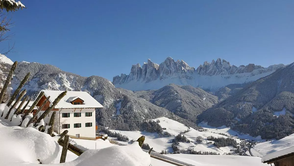 Auf einer Höhe von 1.550 Metern über dem Meeresspiegel empfängt Sie der Felthunerhof zu einem abwechslungsreichen und spannenden Urlaub auf dem Bauernhof in Villnöss. Der Hof ist der höchstgelegene Bauernhof im gesamten Gemeindegebiet und liegt direkt am Waldrand. Grüne Wiesen und tiefe Wälder umgeben den idyllisch gelegenen Südtiroler Bauernhof. Hier empfängt Sie die erhabene Ruhe der alpinen Bergwelt. Kein Autolärm stört die Stille auf dem Felthunerhof in der Fraktion Coll in Villnöss. Coll ist bekannt für die vielen Sonnenstunden im Sommer und besonders im Winter. Der nächste Ort liegt vier Kilometer vom Hof entfernt. Ihren Urlaub auf dem Bauernhof in Villnöss verbringen Sie in harmonischem Einklang mit der Natur. Morgens zwitschern die Vögel vor Ihrem Fenster und seit einigen Jahren zieht ein Adler majestätisch seine Kreise über dem Felthunerhof.