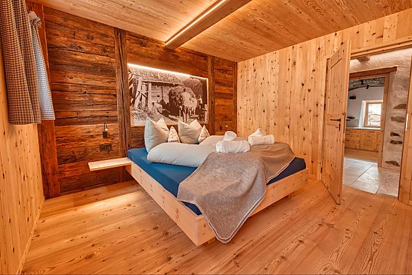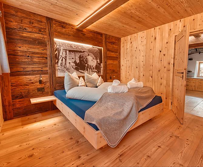 Unser Ferienhaus, in dem die beiden Wohnungen liegen, ist in Blockbau aus Schnalser Lärche erbaut. Die Wohnungen sind mit hochwertigen Möbeln aus Zirbenholz und Naturmaterialien eingerichtet. Unterhalb des Hauses befinden sich Kinderspielplatz und verschiedene Liege- und Sitzmöglichkeiten.
