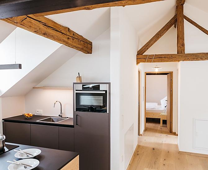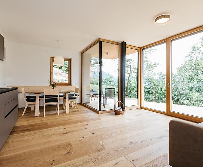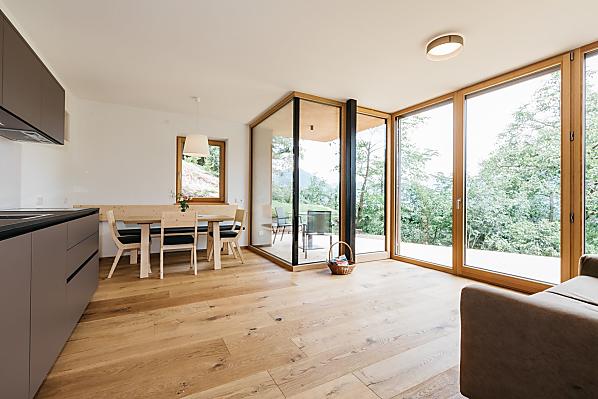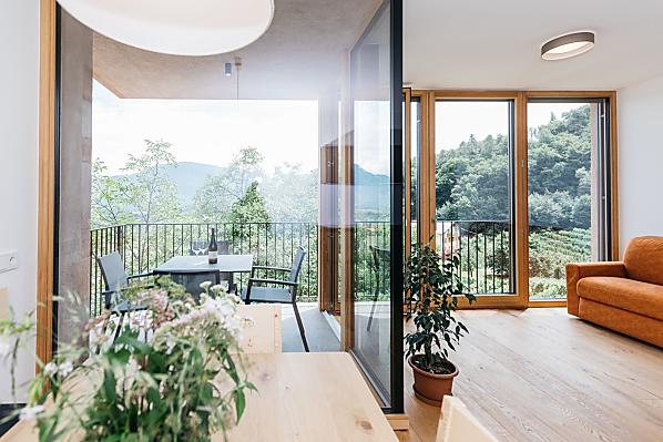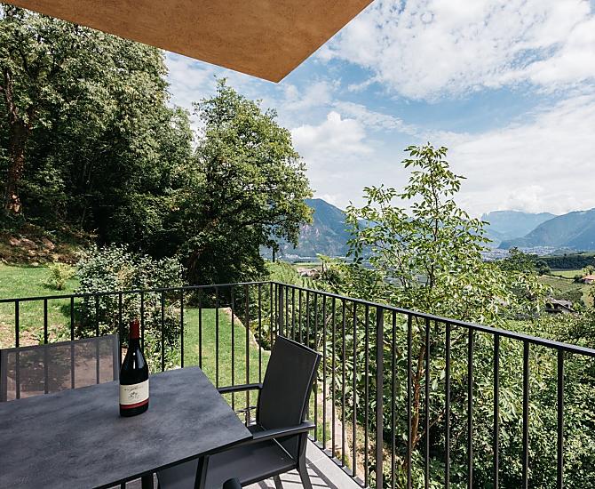 Der Firmeleinhof in Eppan an der Weinstraße steht seit Jahrhunderten immer noch wie eine Festung da. Eine erste urkundliche Erwähnung geht auf das Jahr 1175 zurück, wo die Quellen von der kleinen Burg Pedemunt sprechen. Der Firmeleinhof ist heute ein typischer Überetscher Weinhof und ein gemütliches Urlaubszuhause, umgeben von viel Grün, bewacht von der Burg Boymont und mit wunderbarem Fernblick. Streifzüge durch unseren Wald und unsere Weinberge oder einfach nur entspannen auf der Liegewiese und dem Zwitschern der Vögel zuhören. Klein und Groß genießen bei uns die Ruhe und Erholung, die ein Urlaub am Bauernhof bietet. Der Firmeleinhof bietet ein einmaliges Ambiente: Die Natur vor der Tür, wohnen Sie in Appartements, die Tradition und modernes Design vereinen. Erleben Sie die Ruhe, die die dicken Mauern im Schlafbereich ausstrahlen und blicken Sie im Wohnbereich durch die breite Glasfront auf die Kulisse der Südtiroler Bergwelt.