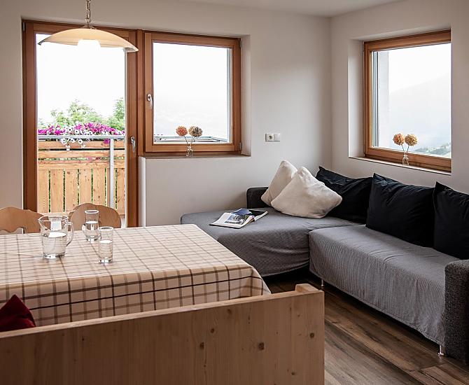 Unsere Ferienwohnungen befinden sich auf dem Sonnenplateau in Meransen auf 1.353 m Höhe und bieten Dir traumhafte Panoramaausblicke auf das Pustertal, Brixen und Umgebung, die Dolomiten und unseren Hausberg „Gitschberg“. Freue Dich auf erholsame Tage!