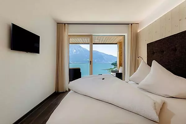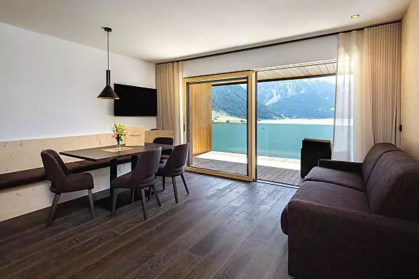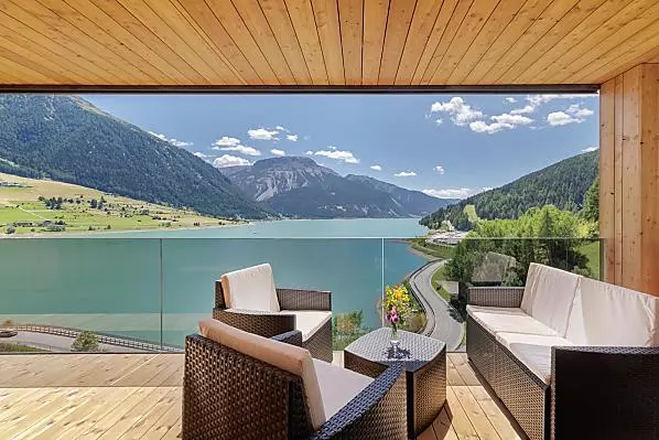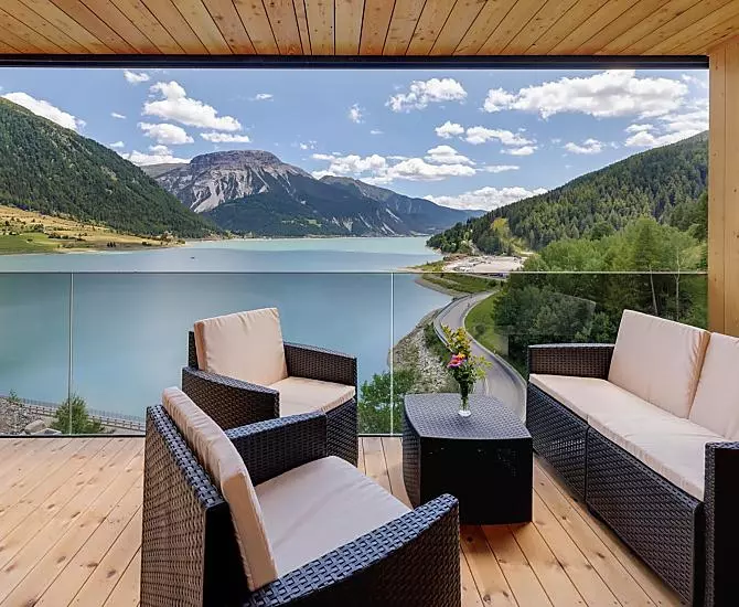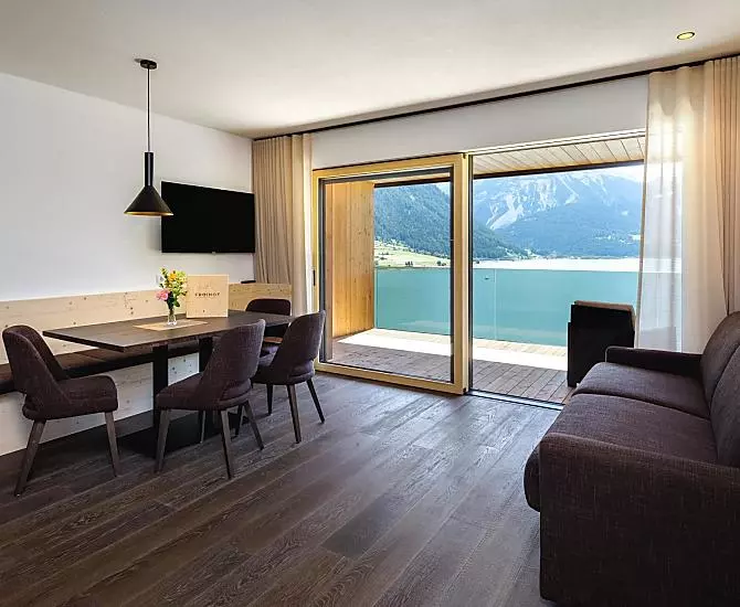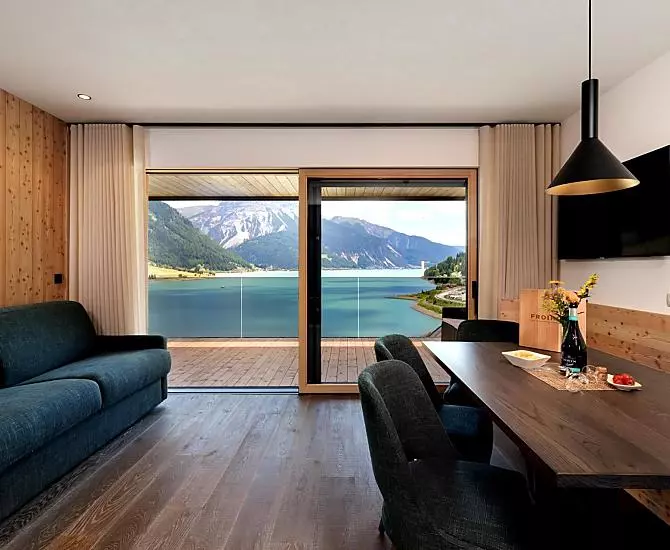 Ein See(h)nsuchtsort im Obervinschgau. Freiheit. Ruhe. Panorama-Aussicht. All das verkörpert der Froihof am Reschensee.