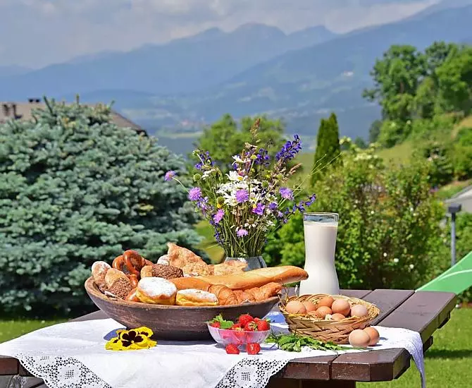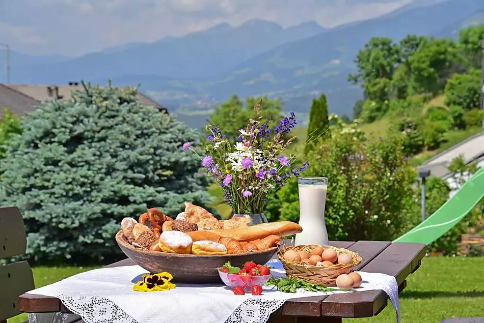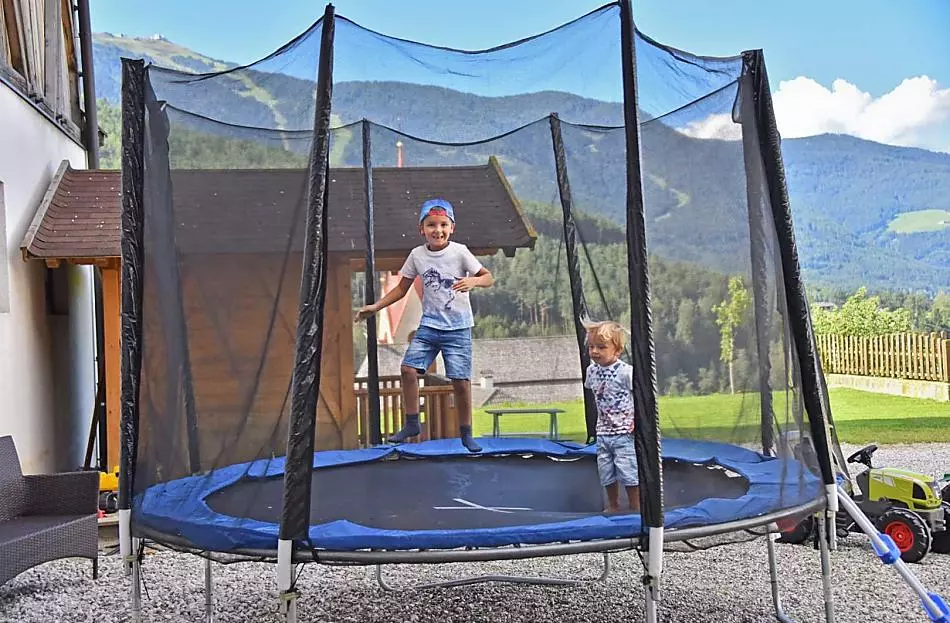 Unser Hof liegt auf 970 m in Percha, mitten in der Natur, und ist ideal für Ihren Familien- oder Aktivurlaub. Genießen Sie von einer unserer vier Ferienwohnungen die Aussicht auf den Kronplatz, den "Skiberg Nr. 1" und die umliegenden Dolomiten. Gerne können Sie sich auf unserer ausgedehnten Liegewiese erholen oder dem Bauer Ernst beim Melken der Kühe zuschauen. Ihre Kinder können die Kühe, Kälber und Hühner beobachten oder mit unseren Katzen durch die Wiesen streifen. Lotta, unser Hofhund, wird Sie mit Freude auf dem Bauernhof begrüßen. Unser großer Außenbereich und der Spielplatz mit Rutsche, Schaukel, Trampolin, Holzhaus, Grillplatz und Sandkasten lädt zum Toben ein. Mama und Papa können sich währenddessen vor der traumhaften Bergkulisse entspannen, die Sonne genießen, den Duft frisch gemähter Wiesen einatmen oder in unserer Relaxe-Zone mit Sauna und Solarium zur Ruhe kommen.