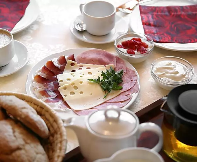 - Frühstück im Aufenthaltsraum, Frühstücksbuffet, Gabelfrühstück