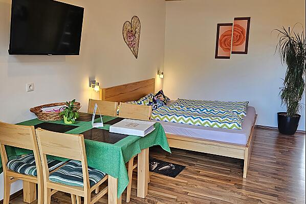 - Aufenthaltsraum (Holzofen, WLAN, Kochnische, Kühlschrank, barrierefreie Einrichtung, Kinderspielecke)