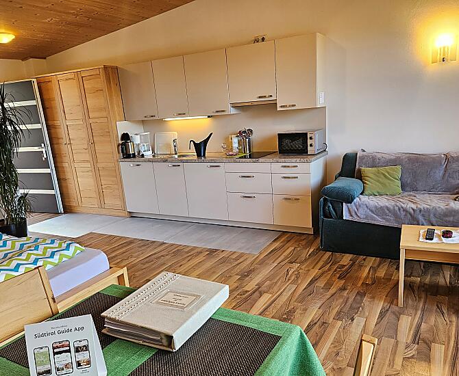 Entspannen Sie sich auf unserem Obstbauernhof inmitten eigener Obstwiesen mit einer beneidenswerten Rundumsicht. Hier finden Sie den idealen Ort für Ihren Urlaub, damit Sie Ihren Alltag vergessen können. Fühlen Sie sich wohl in einer unserer modernen Ferienwohnungen. Ein wahres Paradies für Familien, Radler, Genießer, Wanderer, Biker. Wir sind ein Familienbetrieb und bieten Ihnen hofeigene Produkte und Einblicke in die Arbeit am Hof. Wir freuen uns auf Euch! Sie können auch auf unserer eigenen Webseite die neuen 360° Fotos für jede einzelne Wohnung separat genauer ansehen. Im Preis inklusive ist der freie Eintritt ins Schwimmbad und in die Saunalandschaft Aqua Forum in Latsch. Auch der Guest Pass, mit dem Sie alle öffentliche Verkehrsmittel in Südtirol gratis nutzen können, ist im Preis inbegriffen.