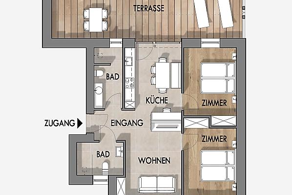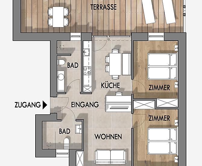2-6 Personen (4 fixe Betten) 68m²