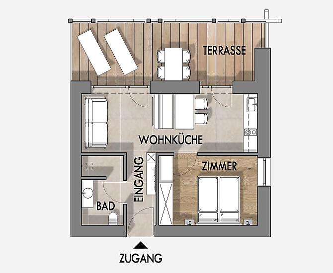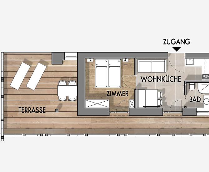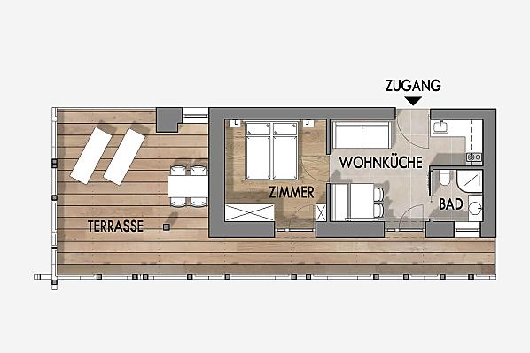 2-4 Personen (2 fixe Betten) 40m²