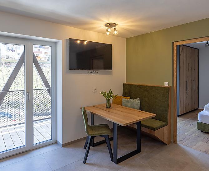 Ein einzigartiges Urlaubserlebnis an einem besonderen Ort: Die neu gebauten Ferienwohnungen in Tarsch bei Latsch, inmitten Südtiroler Apfelwiesen.