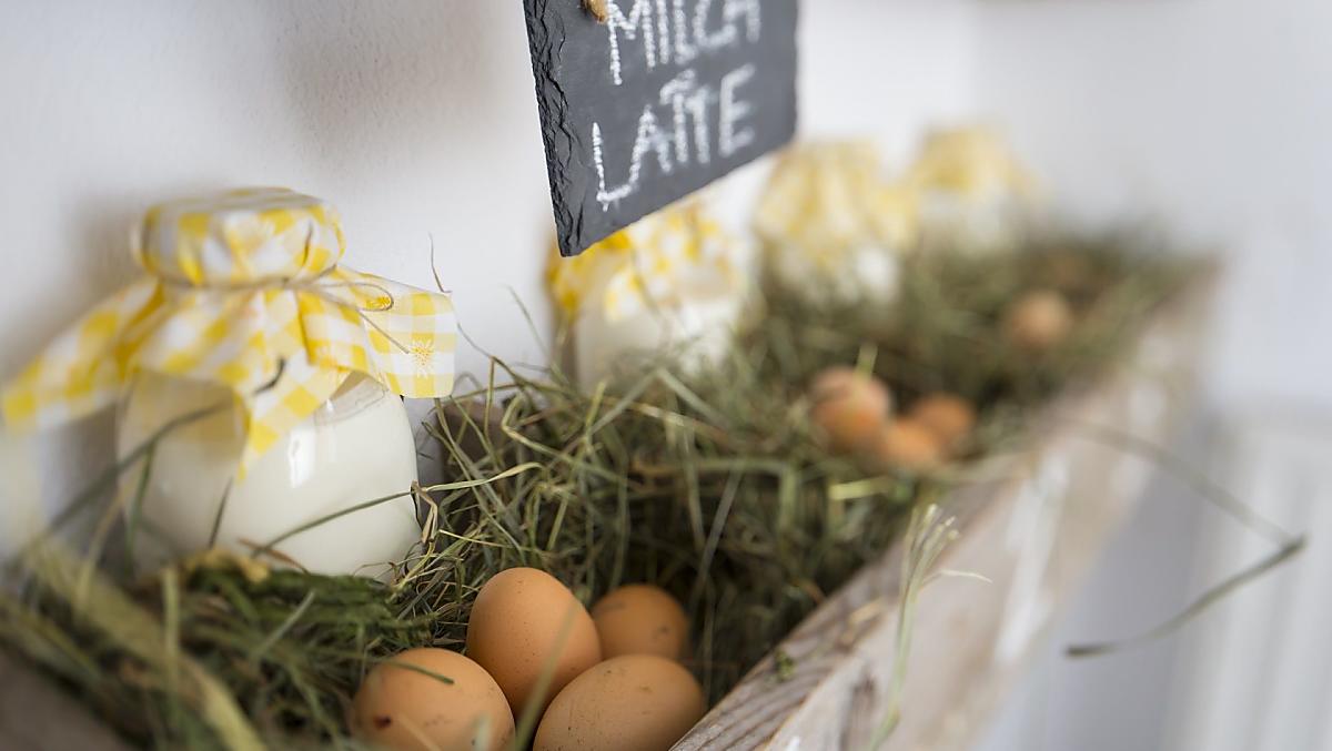 Milch, Eier, Kräutergewürze, Frisches Gemüse je nach Saison