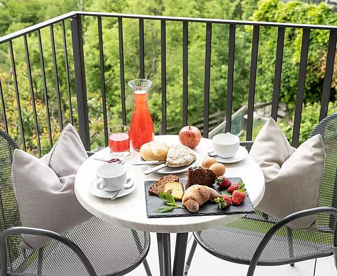 • Frühstück im Aufenthaltsraum, Frühstück in der Bauernstube, Frühstück im Freien (je nach Saison), Frühstücksbuffet