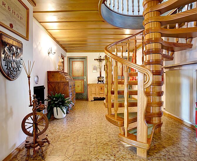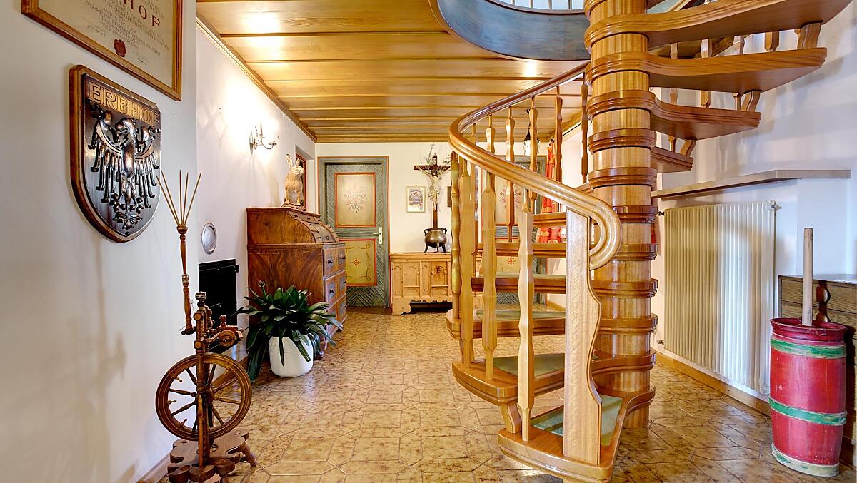 Fahren Sie vorbei an der Kirche und nehmen Sie die zweite Auffahrt nach rechts beim Haus Villa Gottfried in Richtung Grotthof. Der Grotthof ist auch hier gut ausgeschildert!