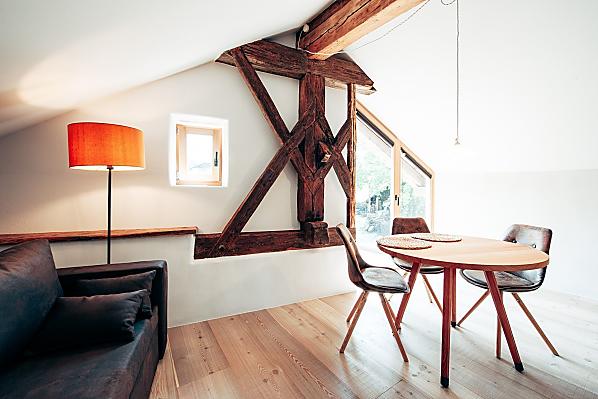 Erlebe ruhige, erholsame Momente auf einer historischen, neu renovierten Hofstelle inmitten der Terlaner Weinberge. Altes, verwinkeltes Mauerwerk mit Moderne und Liebe zum Detail eingerichtet.