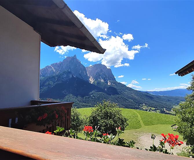 Unser Bauernhof liegt auf ca. 1260 m Meereshöhe inmitten traumhafter Berglandschaft und klarer Luft in sehr sonniger, ruhiger Lage mit beeindruckendem Panorama auf das Schlernmassiv. Weiter blicken Sie über den Bozner Talkessel hinweg, zum Rittner Horn, zur Mendel, der Texelgruppe und wenn es die Wetterbedingungen erlauben bis hin zum Ortlergebirge.