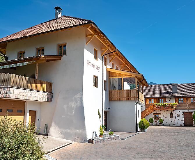 Unser historischer Weinhof liegt ruhig und sehr sonnig auf 600 m Meereshöhe umgeben von Weinbergen. Das denkmalgeschützte Bauernhaus haben wir 2022/2023 behutsam umgebaut und saniert und es sind ganz besondere Ferienwohnungen entstanden. Für den Umbau haben wir vorwiegend Holz aus dem eigenen Wald verwendet, auf einheimische Firmen und Handwerker vertraut und selbst mitgeholfen wo wir konnten. Unser Bauernhaus bietet nun 3 Generationen und unseren Gästen genügend Raum und Komfort zum Wohlfühlen. Dazu die Herzlichkeit der Gastgeberfamilie, der wunderschöne Blick auf den Rosengarten der Dolomiten und die Nähe zu Bozen lässt einen Urlaub auf dem Gstreinhof zu einem unvergesslichen Erlebnis werden.